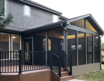 Screened in porch construction with EZE Breeze windows & custom open-air deck